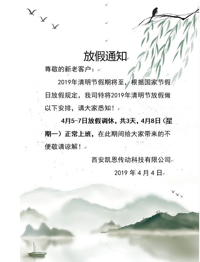 2019年4月5-7日放假,4月8日(星期一)正常上班